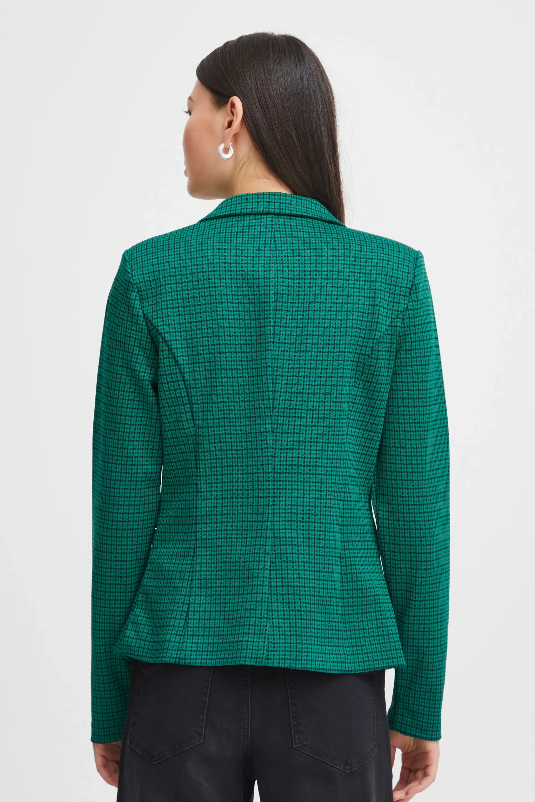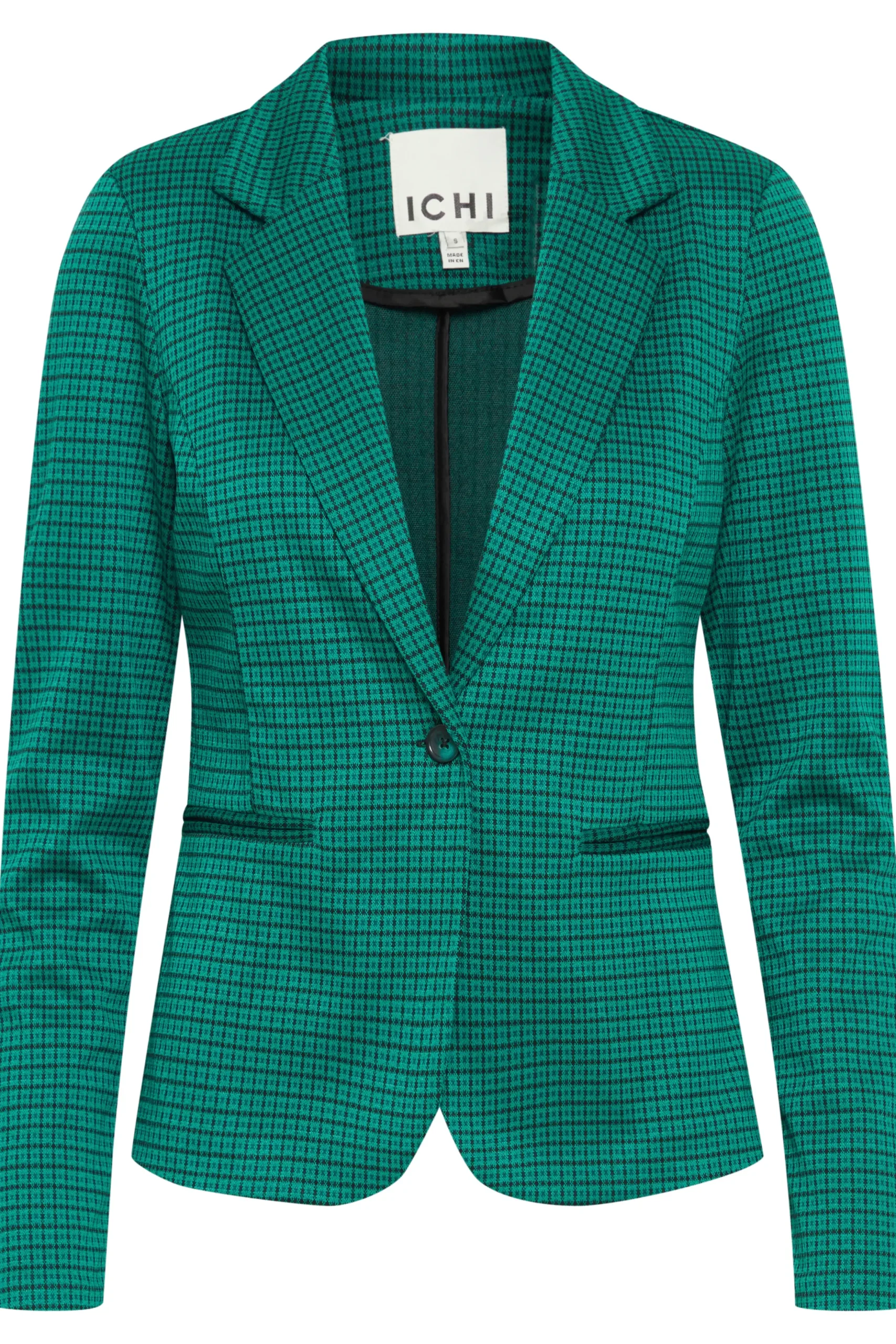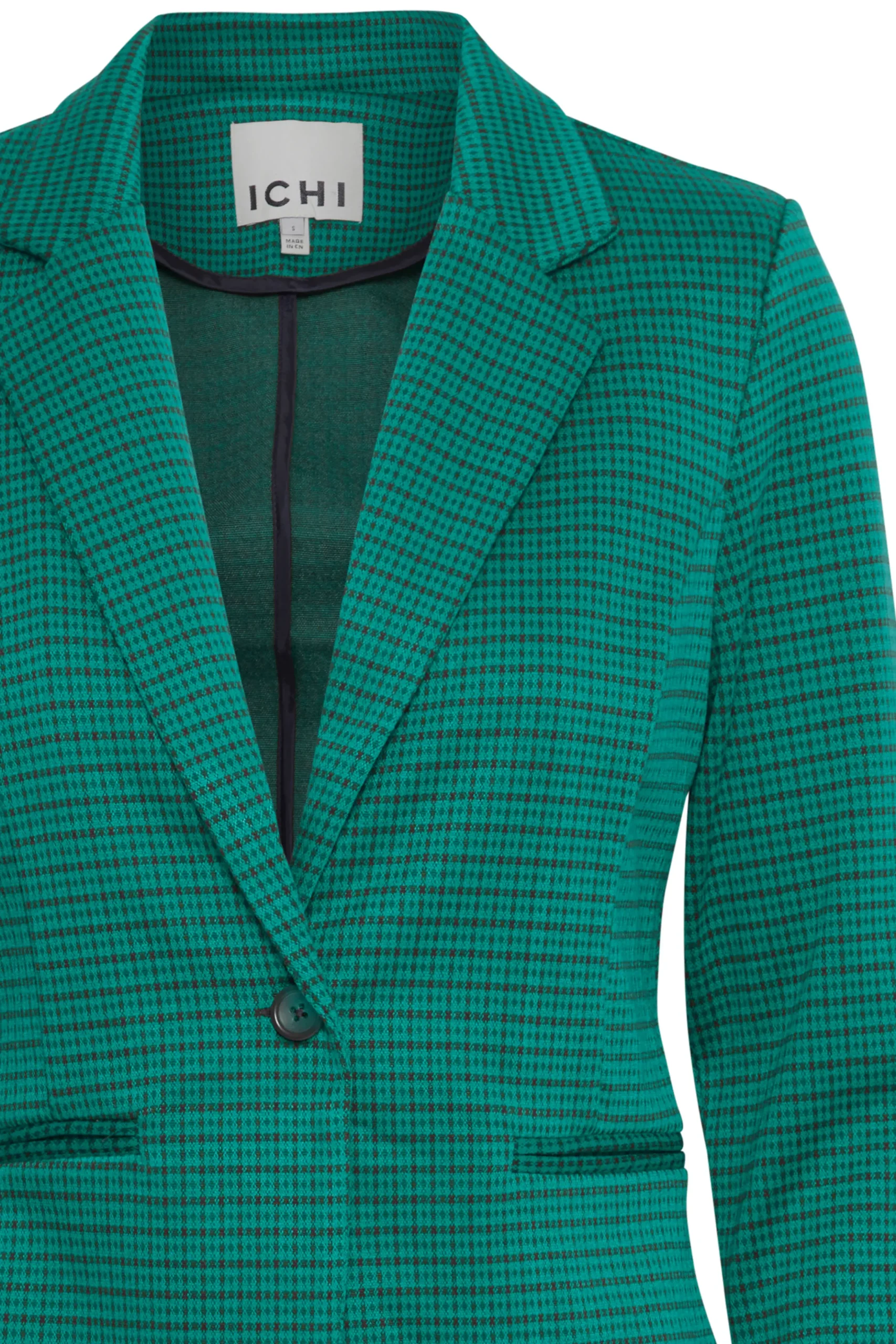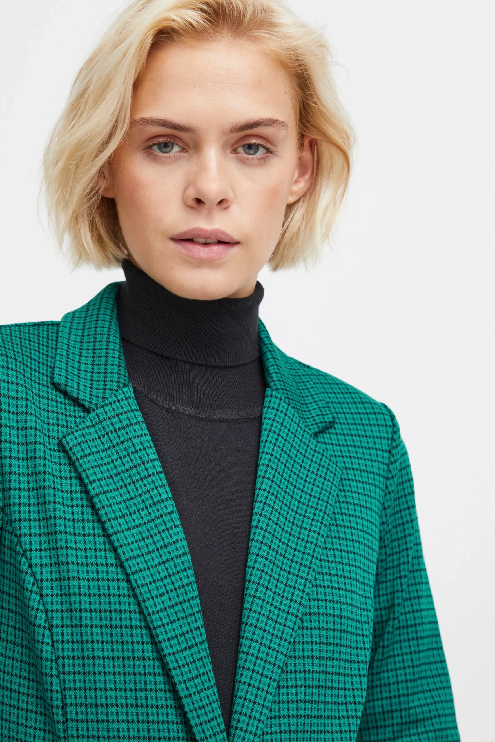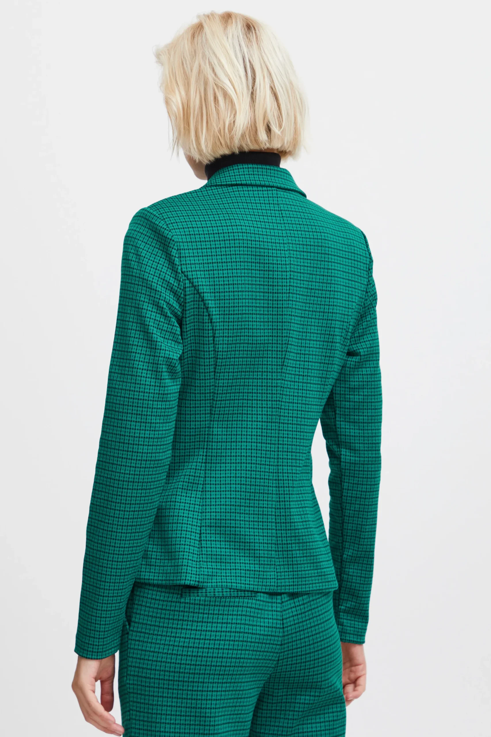 This IHKate blazer is in a tight fit, with regular length and long sleeves. It is knitted, which gives it a unique texture. The quality is high, as it is made from polyester, viscose, and elastane. A pair of classic black trousers or a stylish dress would be a perfect match for this blazer.