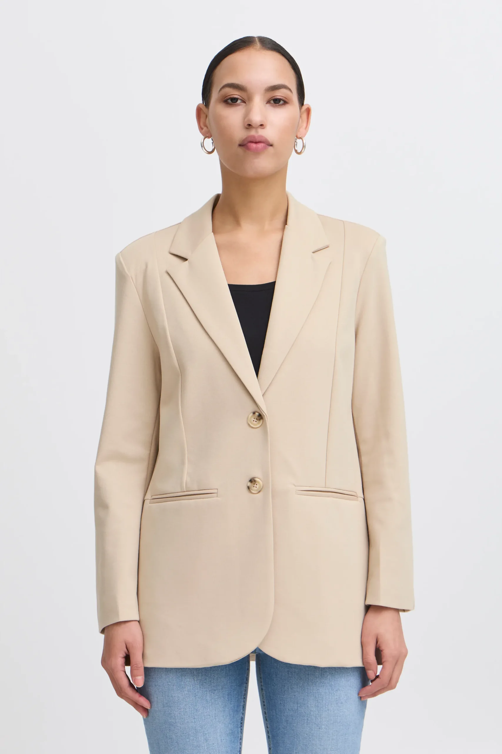 This blazer is designed to perfectly combine elegance and comfort. With its popular IHKATE silhouette and relaxed fit, it offers a modern and sophisticated look while ensuring freedom of movement. Its full length and long sleeves make it ideal for both everyday wear and special occasions.