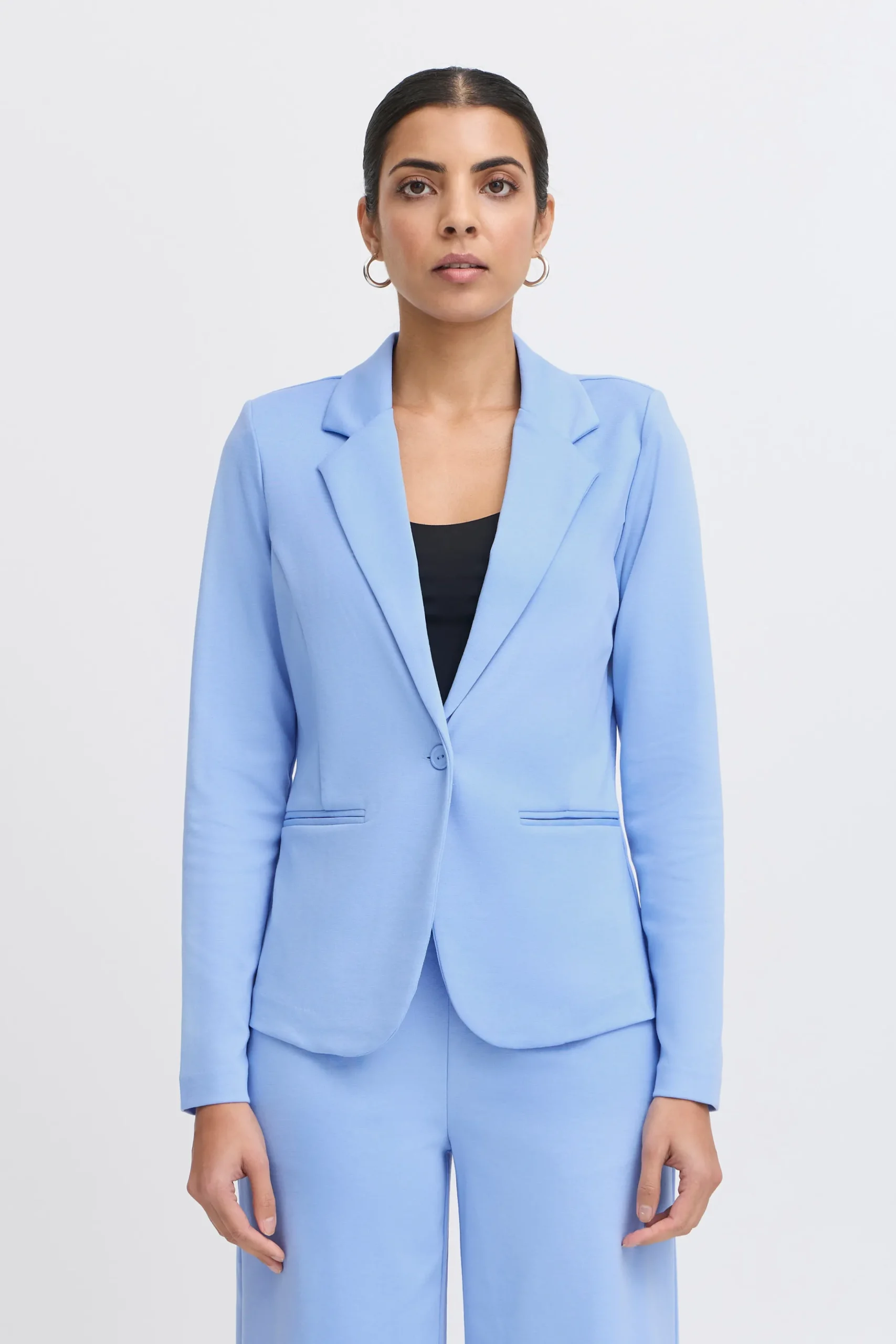 Looking for a sophisticated and elegant addition to your wardrobe? This blazer in a sweat-like fabric is just what you need. With a regular/fitted cut, lapels, and front buttons, it offers a perfect blend of elegance and comfort. The durable material ensures it stays a staple piece for years. Ideal for both formal and casual outfits, this versatile blazer complements a wide range of styles.