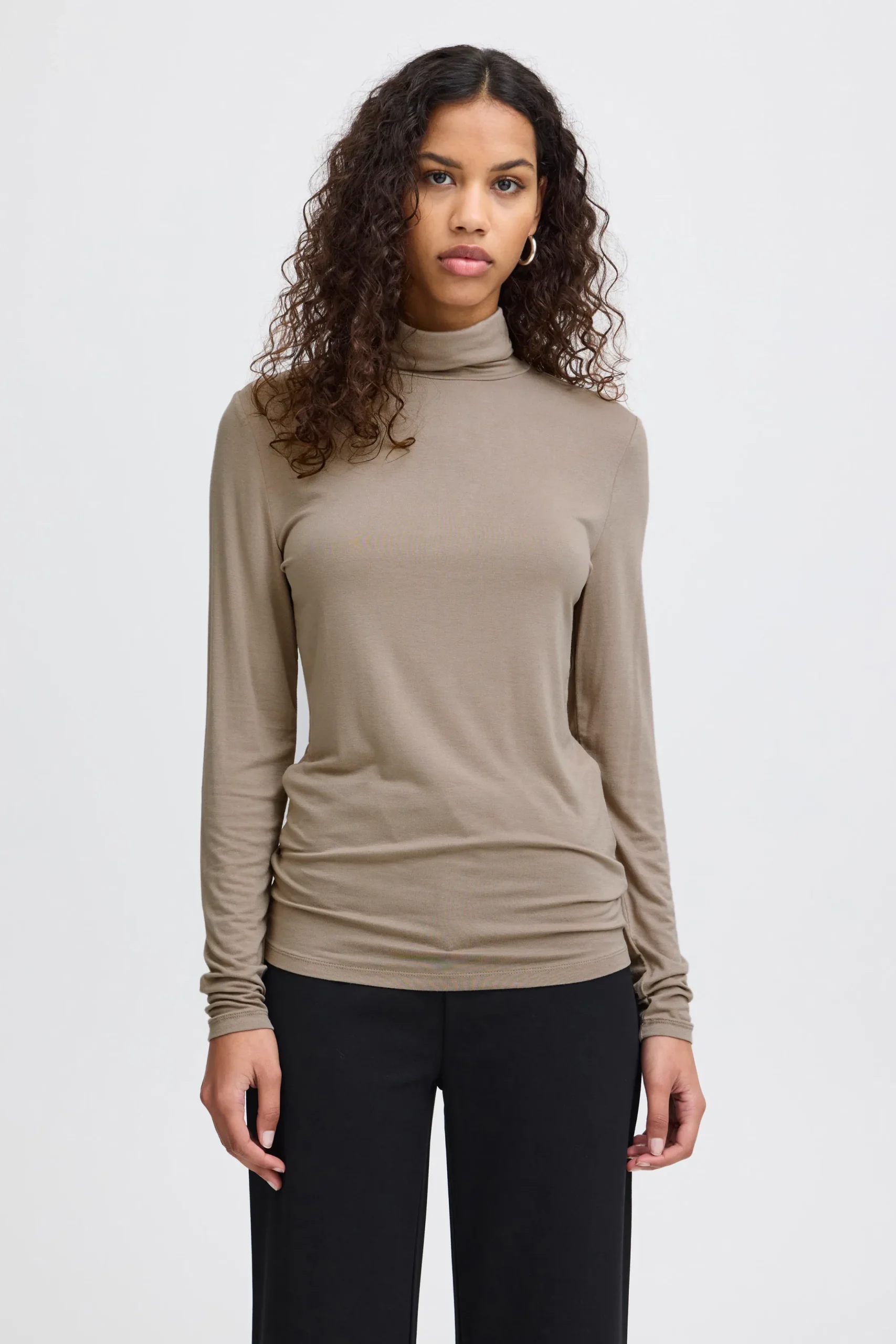 This elegant turtleneck has a simple and classic silhouette that provides a timeless look. The thin and lightweight material makes it incredibly comfortable to wear, while still keeping you warm in cooler weather. Its minimalist design makes it perfect for both everyday wear and more formal occasions. Pair it with a blazer and trousers for a professional look, or with jeans for a casual yet stylish appearance. This versatile top can be styled in many ways, making it an essential piece for any wardrobe.