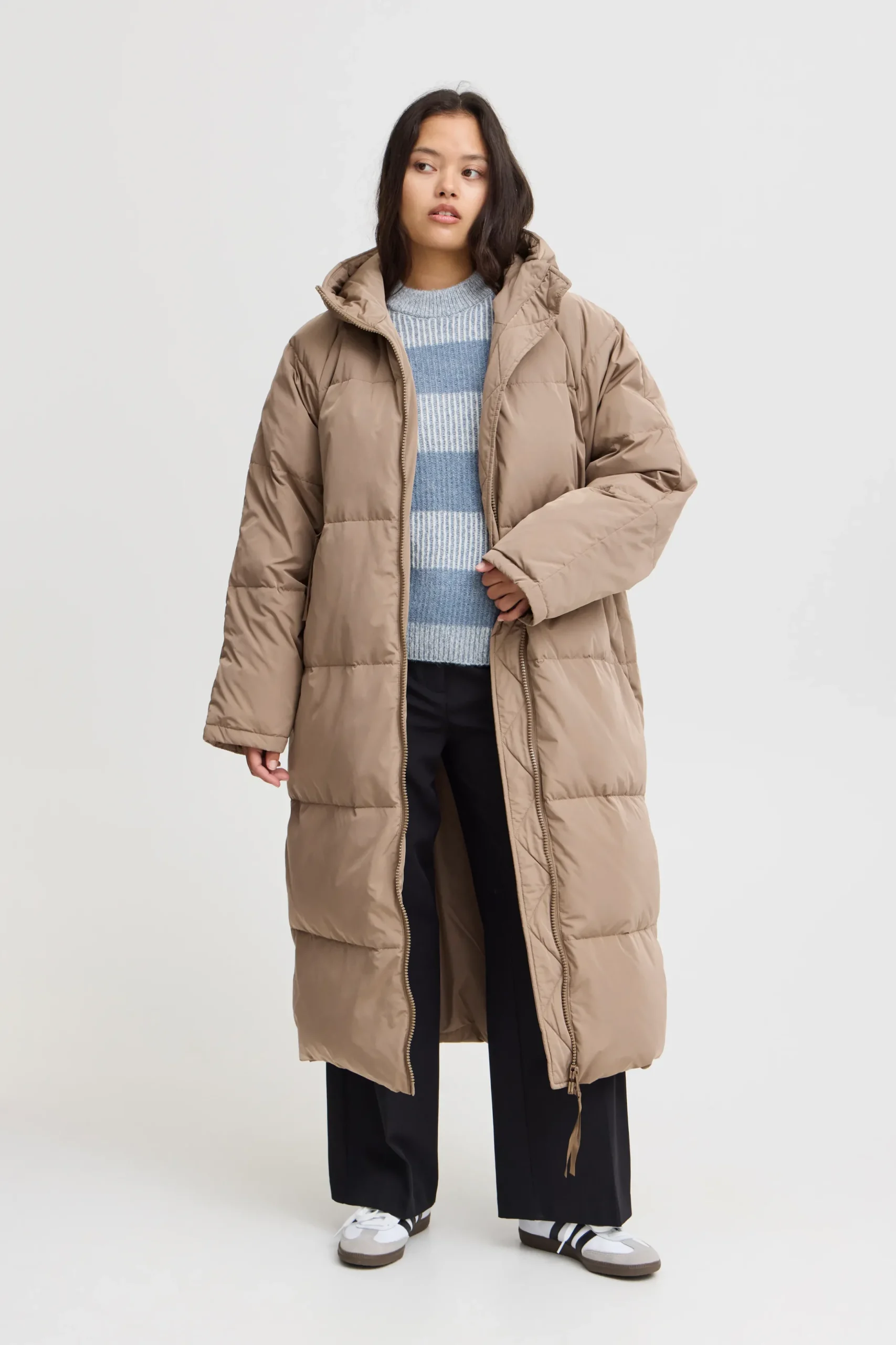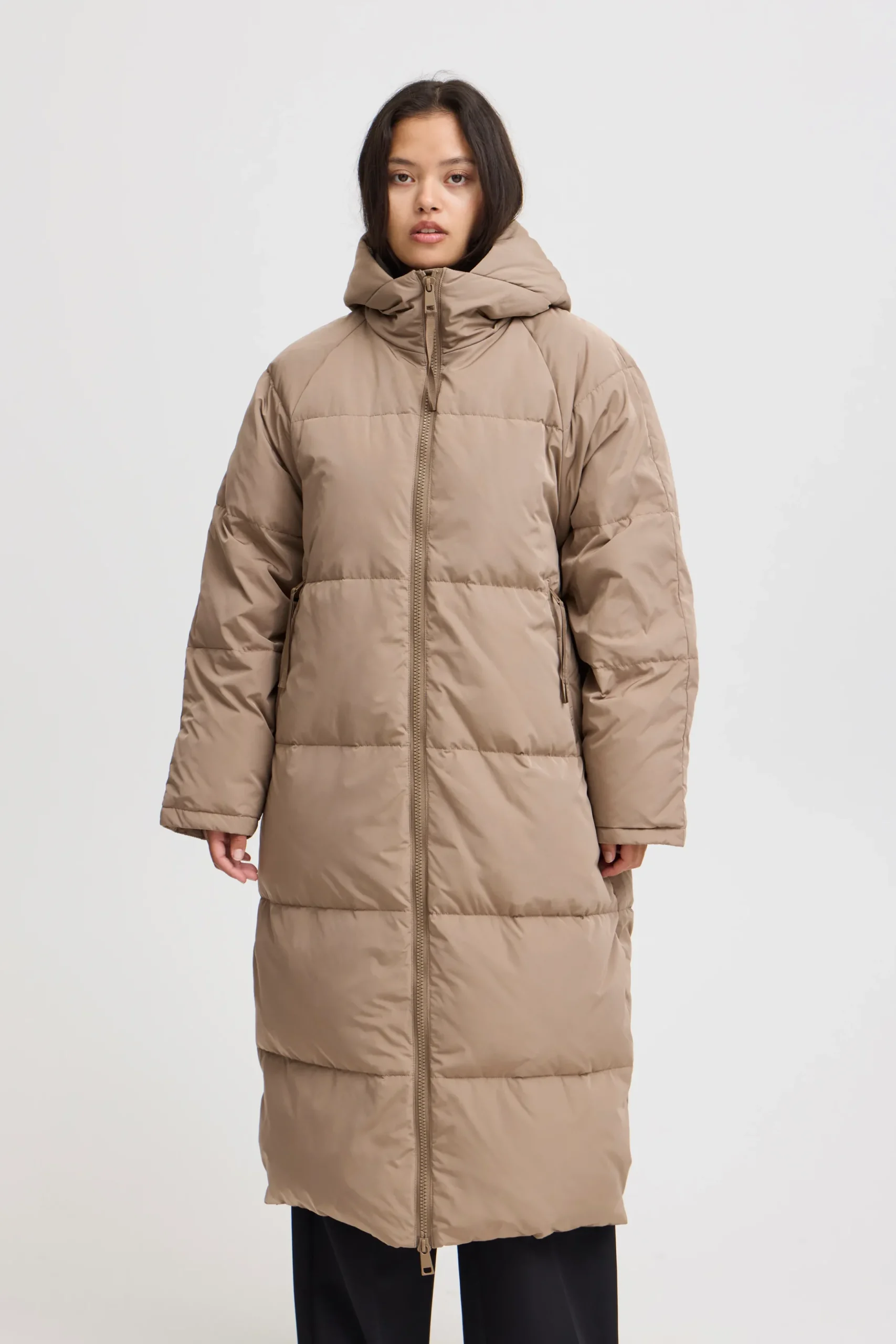 This long winter coat from ICHI is perfect for the chilly winter months. With its extended fit and built-in lining, the jacket ensures you stay warm on cold days. The high collar provides protection against the wind, and the two practical pockets offer space for storing small items.