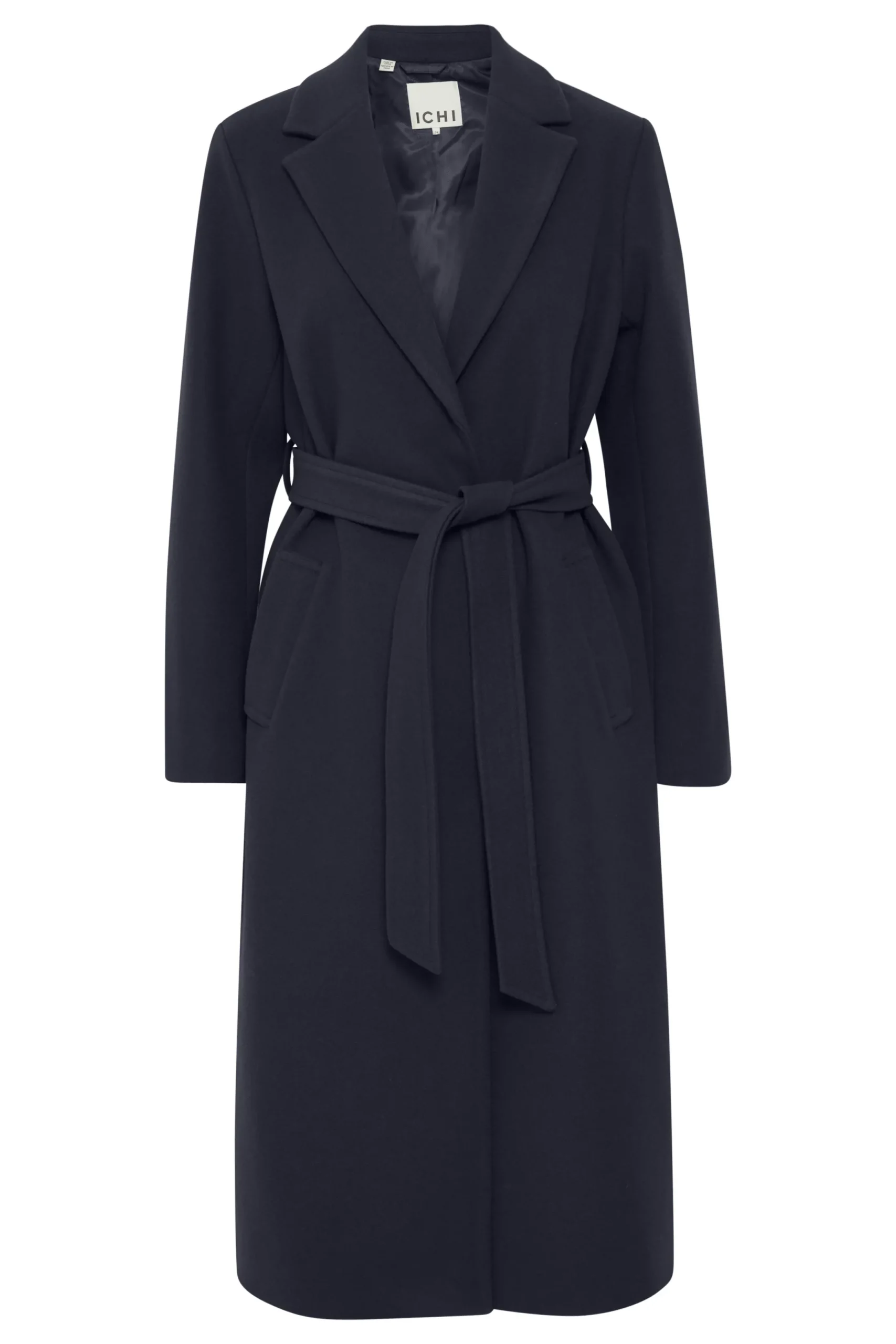 This coat combines a comfortable fit with an elegant silhouette. The wide collar and the waist tie create a feminine and sophisticated look that can easily be styled for both everyday wear and formal occasions.