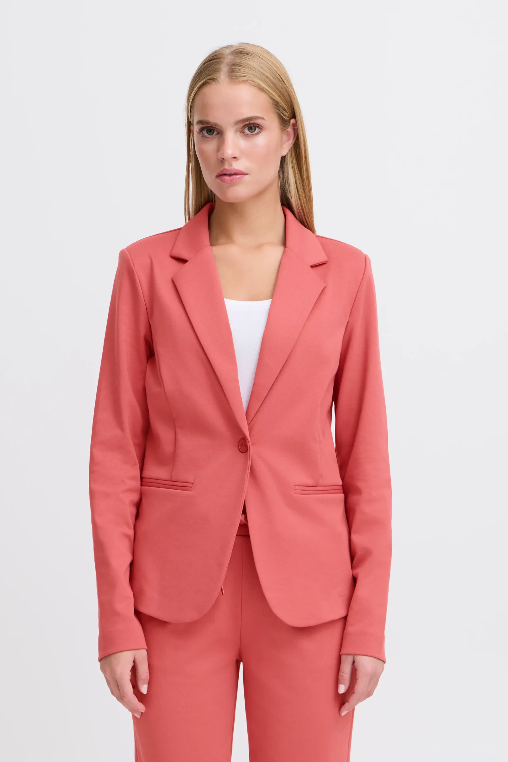 Looking for a sophisticated and elegant addition to your wardrobe? This blazer in a sweat-like fabric is just what you need. With a regular/fitted cut, lapels, and front buttons, it offers a perfect blend of elegance and comfort. The durable material ensures it stays a staple piece for years. Ideal for both formal and casual outfits, this versatile blazer complements a wide range of styles.