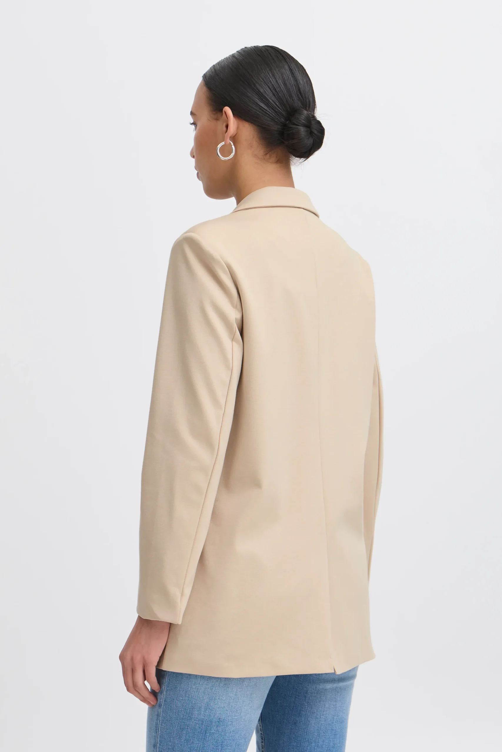This blazer is designed to perfectly combine elegance and comfort. With its popular IHKATE silhouette and relaxed fit, it offers a modern and sophisticated look while ensuring freedom of movement. Its full length and long sleeves make it ideal for both everyday wear and special occasions.