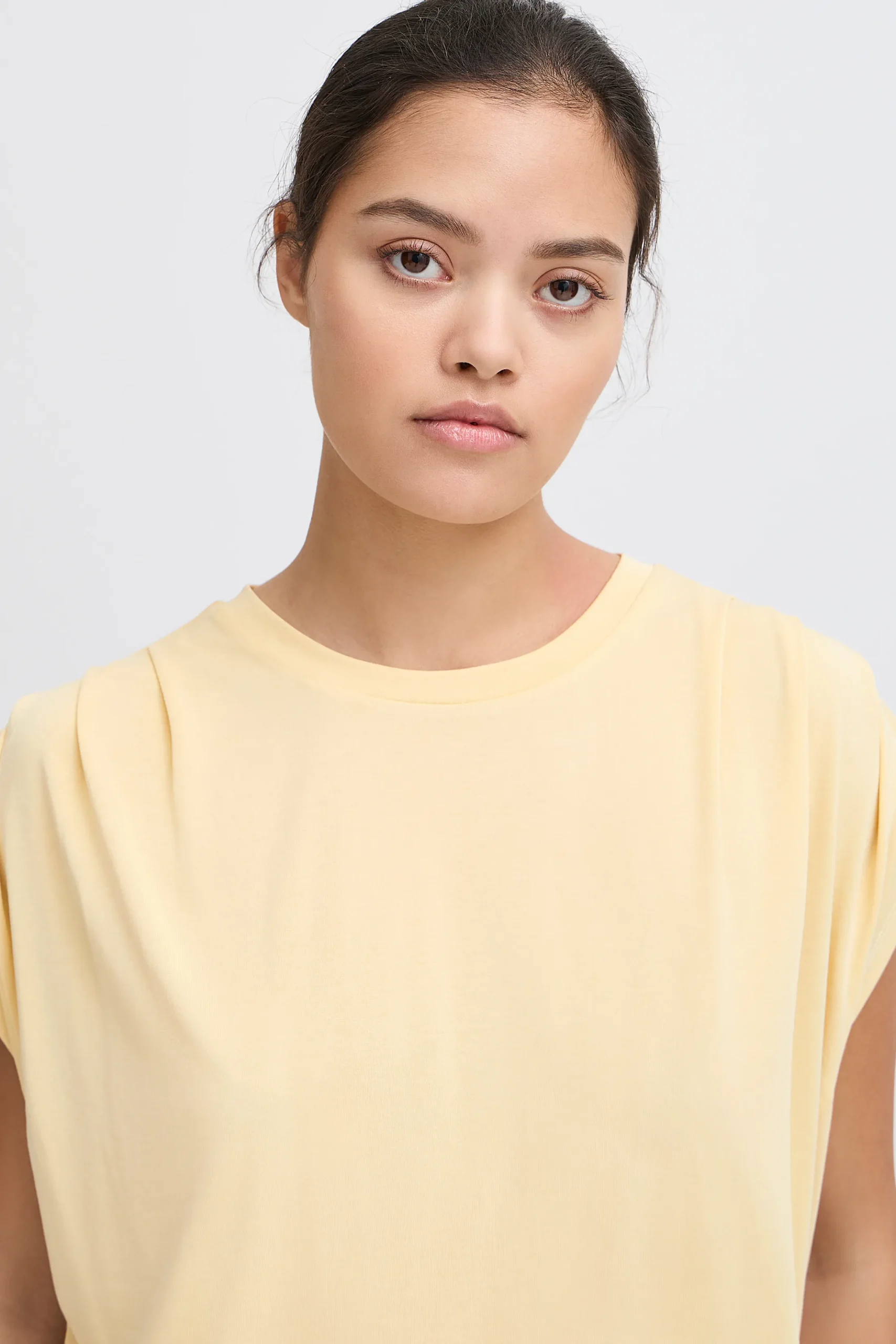 This top blends elegance and comfort with a soft, lightweight fabric that offers a flattering fit. The breathable material ensures all-day comfort, while the subtle sheen adds a sophisticated touch. Its timeless silhouette makes it easy to style – pair it with high-waisted trousers for a relaxed look or with a blazer for a more polished outfit. A versatile wardrobe staple for any occasion.