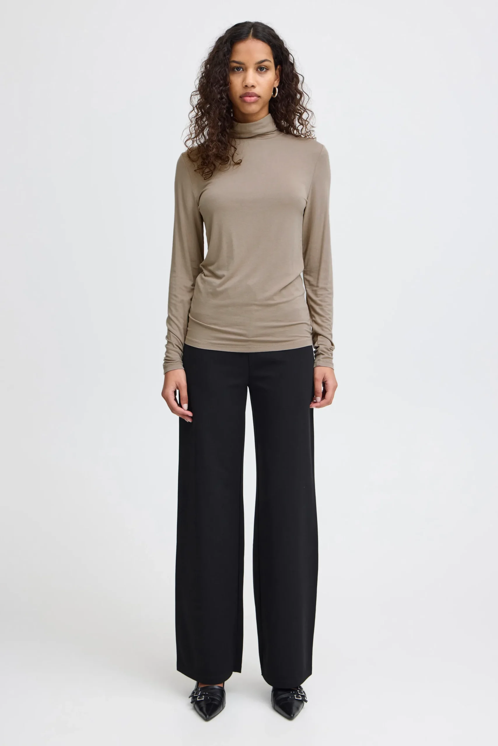This elegant turtleneck has a simple and classic silhouette that provides a timeless look. The thin and lightweight material makes it incredibly comfortable to wear, while still keeping you warm in cooler weather. Its minimalist design makes it perfect for both everyday wear and more formal occasions. Pair it with a blazer and trousers for a professional look, or with jeans for a casual yet stylish appearance. This versatile top can be styled in many ways, making it an essential piece for any wardrobe.